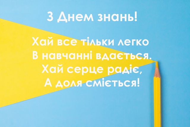 Ось і настав цей день. 1 вересня - День знань і старту нового навчального року. Хочеться побажати, щоб цей день не був причиною печалі, а запам'ятався довгоочікуваними добрими зустрічами, новими цікавими знайомствами. З 1 вересня підкорюйте нові вершини знань і досягайте заповітних цілей. А ваші здібності та наполегливість нехай стануть запорукою визначних успіхів у зміцненні України! Високих оцінок, безпечного навчання, легких контрольних, цікавих уроків, вірних друзів, з якими все, що вже було сказано, легко здійсниться!